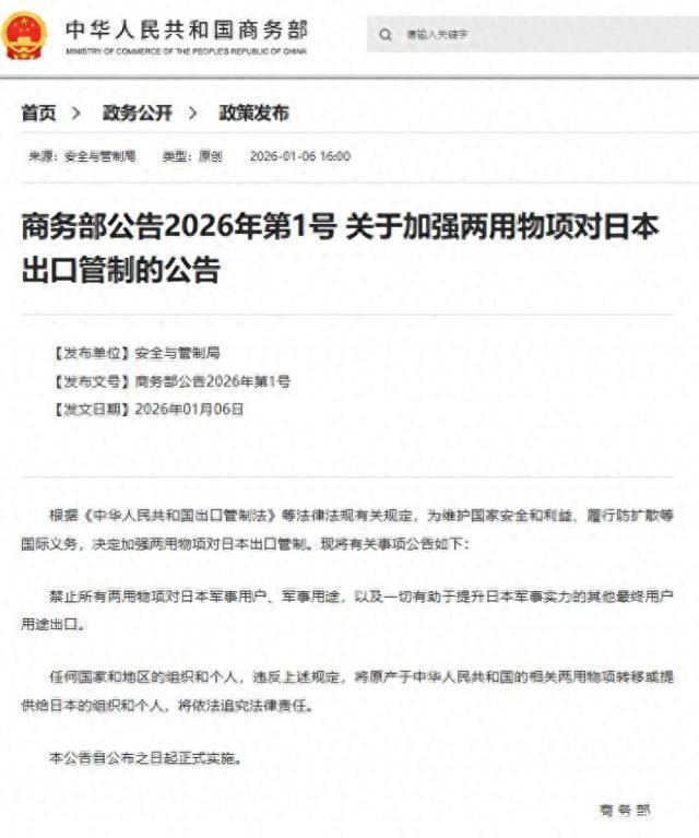 1号、2号公告的接连执行,预示着第二轮中日争端一经打响。就望望高市早苗临了一张牌能阐扬多大作用吧? 若是日本竟然收尾对华出口光刻胶。打出高市内阁手中的临了一张牌。那日本接下来就面对着无牌可打的局势。 发出激烈抗议也没用,80年来从未如斯憋闷更是该死。中方一经明确表态抗议无效!